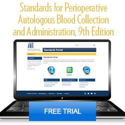 This two-week free trial gives readers access to the full 9th edition of Standards for Perioperative Autologous Blood Collection and Administration in AABB’s Standards Portal. There is no obligation to purchase access to the Portal after the free trial expires.